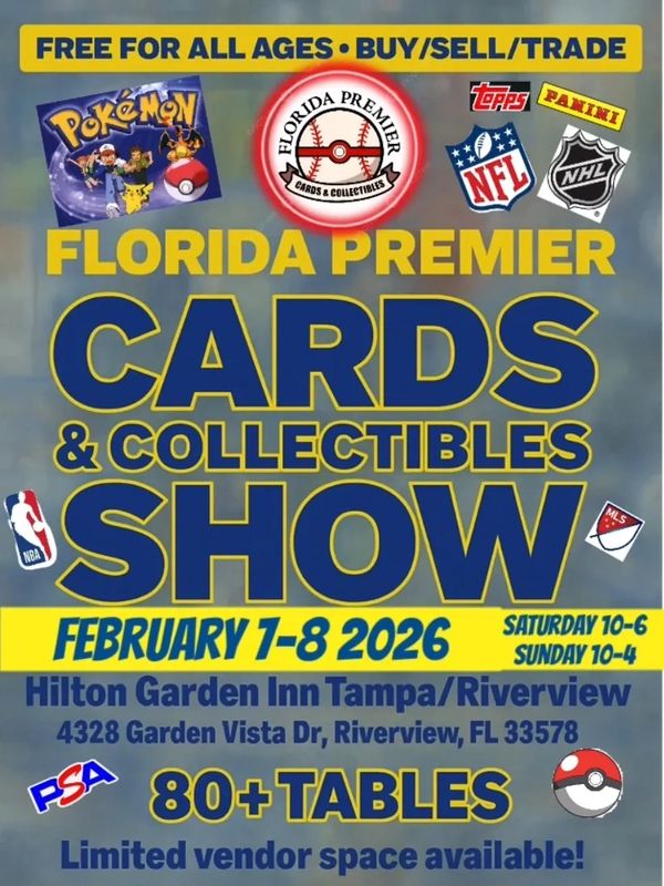 Get ready for the Florida Premier Cards & Collectibles Sports Card and Pokemon expo. This month's event is packed with amazing vendors, and so much more. Whether you're looking to buy, sell, or trade, Florida Premier Cards & Collectibles' Events have something for everyone!